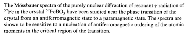 The Mossbauer spectra of the purely nuclear diffraction of resonant γ radiation of 57Fe in the crystal 57FeB03 have been studied near the phase transition of the crystal from an antiferromagnetic state to a paramagnetic state. The spectra are shown to be sensitive to a nucleation of antiferromagnetic ordering of the atomic moments in the critical region of the transition.
