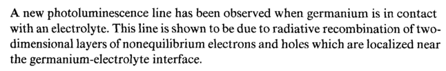 A new photoluminescence line has been observed when germanium is in contact with an electrolyte. This line is shown to be due to radiative recombination of two-dimensional layers of nonequilibrium electrons and holes which are localized near the germanium-electrolyte interface.