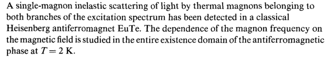 A single-magnon inelastic scattering of light by thermal magnons belonging to both branches of the excitation spectrum has been detected in a classical Heisenberg antiferromagnet EuTe. The dependence of the magnon frequency on the magnetic field is studied in the entire existence domain of the antiferromagnetic phase at Τ = 2 К.