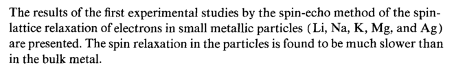 The results of the first experimental studies by the spin-echo method of the spin-lattice relaxation of electrons in small metallic particles (Li, Na, K, Mg, and Ag) are presented. The spin relaxation in the particles is found to be much slower than in the bulk metal.