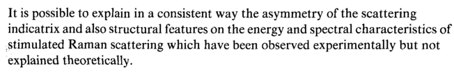 It is possible to explain in a consistent way the asymmetry of the scattering indicatrix and also structural features on the energy and spectral characteristics of .stimulated Raman scattering which have been observed experimentally but not explained theoretically.