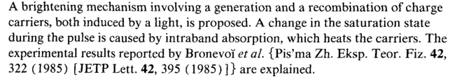 A brightening mechanism involving a generation and a recombination of charge carriers, both induced by a light, is proposed. A change in the saturation state during the pulse is caused by intraband absorption, which heats the carriers. The experimental results reported by Bronevoi et ah {Pis'ma Zh. Eksp. Teor. Fiz. 42, 322 (1985) [JETP Lett. 42, 395 (1985) ]} are explained.