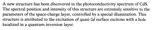A new structure has been discovered in the photoconductivity spectrum of CdS. The spectral position and intensity of this structure are extremely sensitive to the parameters of the space-charge layer, controlled by a special illumination. This structure is attributed to the excitation of quasi-2d surface excitons with a hole localized in a quantum inversion layer.
