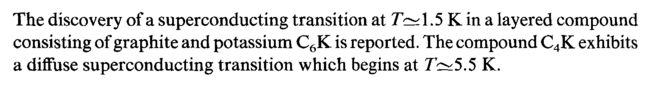 The discovery of a superconducting transition at ôÿì .5 ë in a layered compound consisting of graphite and potassium C6K is reported. The compound C4K exhibits a diffuse superconducting transition which begins at 7ÿ;5.5 ë.