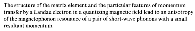 The structure of the matrix element and the particular features of momentum transfer by a Landau electron in a quantizing magnetic field lead to an anisotropy of the magnetophonon resonance of a pair of short-wave phonons with a small resultant momentum.