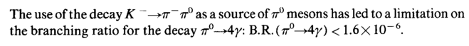 The use of the decay Κ -^π π° as a source of 7Г° mesons has led to a limitation on the branching ratio for the decay π°—>4γ: B.R.(ir°->4?0 < 1.6χ 10"6.