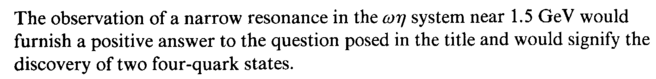 The observation of a narrow resonance in the ωη system near 1.5 GeV would furnish a positive answer to the question posed in the title and would signify the discovery of two four-quark states.