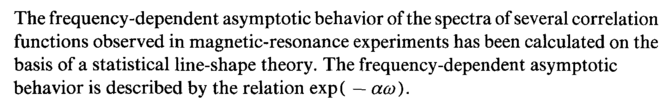 The frequency-dependent asymptotic behavior of the spectra of several correlation functions observed in magnetic-resonance experiments has been calculated on the basis of a statistical line-shape theory. The frequency-dependent asymptotic behavior is described by the relation exp ( — αω).