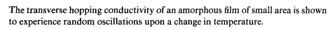 The transverse hopping conductivity of an amorphous film of small area is shown to experience random oscillations upon a change in temperature.