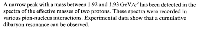 A narrow peak with a mass between 1.92 and 1.93 GeV/c2 has been detected in the spectra of the effective masses of two protons. These spectra were recorded in various pion-nucleus interactions. Experimental data show that a cumulative dibaryon resonance can be observed.