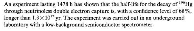 An experiment lasting 1478 h has shown that the half-life for the decay of 196Hg through neutrinoless double electron capture is, with a confidence level of 68%, longer.than 1.3 χ 1017 yr. The experiment was carried out in an underground laboratory with a low-background semiconductor spectrometer.