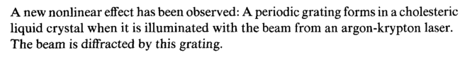A new nonlinear effect has been observed: A periodic grating forms in a cholesteric liquid crystal when it is illuminated with the beam from an argon-krypton laser. The beam is diffracted by this grating.