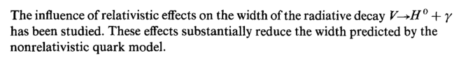 The influence of relativistic effects on the width of the radiative decay V—*H° + γ has been studied. These effects substantially reduce the width predicted by the nonrelativistic quark model.