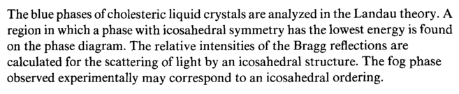 The blue phases of cholesteric liquid crystals are analyzed in the Landau theory. A region in which a phase with icosahedral symmetry has the lowest energy is found on the phase diagram. The relative intensities of the Bragg reflections are calculated for the scattering of light by an icosahedral structure. The fog phase observed experimentally may correspond to an icosahedral ordering.