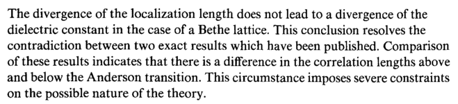 The divergence of the localization length does not lead to a divergence of the dielectric constant in the case of a Bethe lattice. This conclusion resolves the contradiction between two exact results which have been published. Comparison of these results indicates that there is a difference in the correlation lengths above and below the Anderson transition. This circumstance imposes severe constraints on the possible nature of the theory.