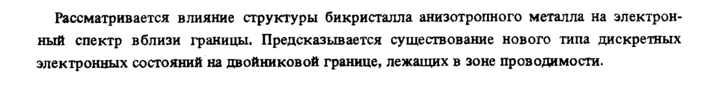 Рассматривается влияние структуры бикристалла анизотропного металла на электронный спектр вблизи границы. Предсказывается существование нового типа дискретных электронных состояний на двойниковой границе, лежащих в зоне проводимости.