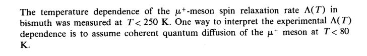 The temperature dependence of the μ+-meson spin relaxation rate Λ(Γ) in bismuth was measured at Γ< 250 К. One way to interpret the experimental A(T) dependence is to assume coherent quantum diffusion of the μ+ meson at T< 80 K.