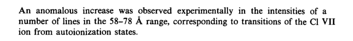 An anomalous increase was observed experimentally in the intensities of a number of lines in the 58-78 A range, corresponding to transitions of the CI VII ion from autoionization states.