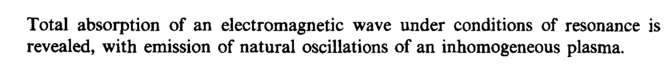 Total absorption of an electromagnetic wave under conditions of resonance is revealed, with emission of natural oscillations of an inhomogeneous plasma.