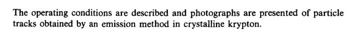 The operating conditions are described and photographs are presented of particle tracks obtained by an emission method in crystalline krypton.