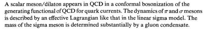 A scalar meson/dilaton appears in QCD in a conformal bosonization of the generating functional of QCD for quark currents. The dynamics of ?r and σ mesons is described by an effective Lagrangian like that in the linear sigma model. The mass of the sigma meson is determined substantially by a gluon condensate.