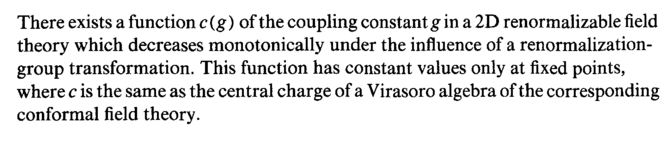 There exists a function с (g) of the coupling constant g in a 2D renorrnalizable field theory which decreases monotonically under the influence of a renormalization-group transformation. This function has constant values only at fixed points, where с is the same as the central charge of a Virasoro algebra of the corresponding conformal field theory.