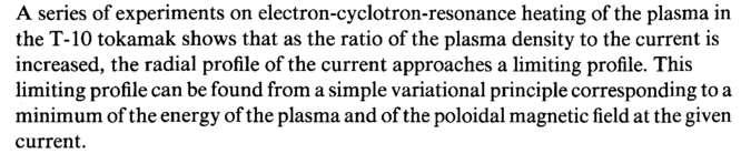 A series of experiments on electron-cyclotron-resonance heating of the plasma in the T-10 tokamak shows that as the ratio of the plasma density to the current is increased, the radial profile of the current approaches a limiting profile. This limiting profile can be found from a simple variational principle corresponding to a minimum of the energy of the plasma and of the poloidal magnetic field at the given current.