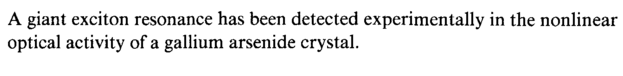 A giant exciton resonance has been detected experimentally in the nonlinear optical activity of a gallium arsenide crystal.