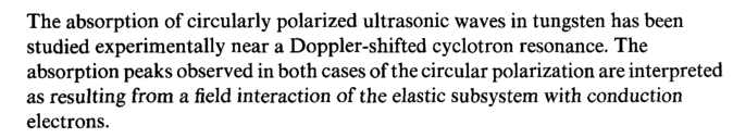 The absorption of circularly polarized ultrasonic waves in tungsten has been studied experimentally near a Doppler-shifted cyclotron resonance. The absorption peaks observed in both cases of the circular polarization are interpreted as resulting from a field interaction of the elastic subsystem with conduction electrons.