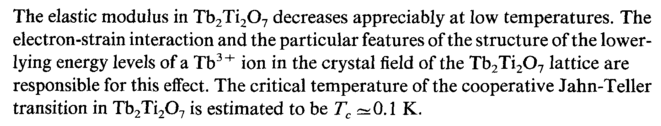 The elastic modulus in Tb2Ti207 decreases appreciably at low temperatures. The electron-strain interaction and the particular features of the structure of the lower-lying energy levels of a Tb3+ ion in the crystal field of the Tb2Ti207 lattice are responsible for this effect. The critical temperature of the cooperative Jahn-Teller transition in Tb2Ti207 is estimated to be Tc ~ 0.1 K.