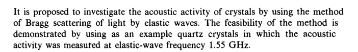 It is proposed to investigate the acoustic activity of crystals by using the method of Bragg scattering of light by elastic waves. The feasibility of the method is demonstrated by using as an example quartz crystals in which the acoustic activity was measured at elastic-wave frequency 1.55 GHz.