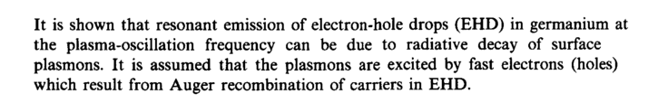 It is shown that resonant emission of electron-hole drops (EHD) in germanium at the plasma-oscillation frequency can be due to radiative decay of surface plasmons. It is assumed that the plasmons are excited by fast electrons (holes) which result from Auger recombination of carriers in EHD.
