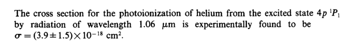 The cross section for the photoionization of helium from the excited state Α ρ ιΡλ by radiation of wavelength 1.06 μηι is experimentally found to be cr = (3.9±1.5)XlO-18 cm2.