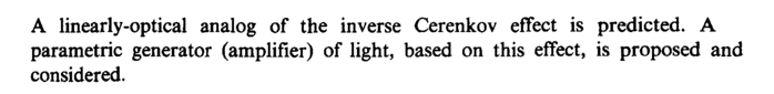A linearly-optical analog of the inverse Cerenkov effect is predicted. A parametric generator (amplifier) of light, based on this effect, is proposed and considered.