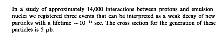 In a study of approximately 14,000 interactions between protons and emulsion nuclei we registered three events that can be interpreted as a weak decay of new particles with a lifetime ~10~14 sec. The cross section for the generation of these particles is 5