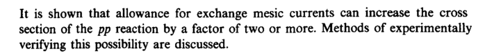 It is shown that allowance for exchange mesic currents can increase the cross section of the pp reaction by a factor of two or more. Methods of experimentally verifying this possibility are discussed.