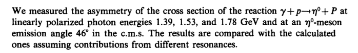 We measured the asymmetry of the cross section of the reaction y + p—nf+P at linearly polarized photon energies 1.39, 1.53, and 1.78 GeV and at an 7)°-meson emission angle 46° in the c.m.s. The results are compared with the calculated ones assuming contributions from different resonances.