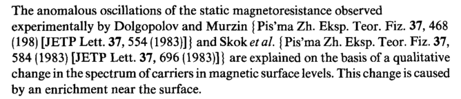 The anomalous oscillations of the static magnetoresistance observed experimentally by Dolgopolov and Murzin [Pis'ma Zh. Eksp. Teor. Fiz. 37, 468 (198) [JETP Lett 37, 554 (1983)] j and Skoketal. {Pis'maZh. Eksp. Teor. Fiz. 37, 584 (1983) [JETP Lett. 37, 696 (1983)] j are explained on the basis of a qualitative change in the spectrum of carriers in magnetic surface levels. This change is caused by an enrichment near the surface.