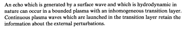 An echo which is generated by a surface wave and which is hydrodynamic in nature can occur in a bounded plasma with an inhomogeneous transition layer. Continuous plasma waves which are launched in the transition layer retain the information about the external perturbations.