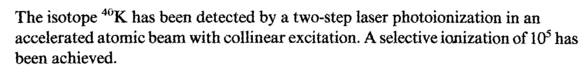 The isotope К has been detected by a two-step laser photoionization in an accelerated atomic beam with collinear excitation. A selective ionization of 105 has been achieved.