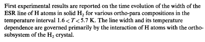 First experimental results are reported on the time evolution of the width of the ESR line of Η atoms in solid H2 for various ortho-para compositions in the temperature interval 1.6 < T< 5.7 K. The line width and its temperature dependence are governed primarily by the interaction of Η atoms with the ortho-subsystem of the H2 crystal.