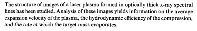 The structure of images of a laser plasma formed in optically thick x-ray spectral lines has been studied. Analysis of these images yields information on the average expansion velocity of the plasma, the hydrodynamic efficiency of the compression, and the rate at which the target mass evaporates.