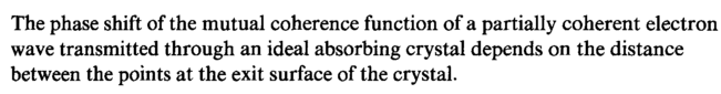 The phase shift of the mutual coherence function of a partially coherent electron wave transmitted through an ideal absorbing crystal depends on the distance between the points at the exit surface of the crystal.