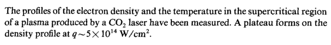 The profiles of the electron density and the temperature in the supercritical region of a plasma produced by a C02 laser have been measured. A plateau forms on the density profile at q ~ 5 X 1014 W/cm2.