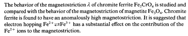 The behavior of the magnetostriction Я of chromite ferrite Fe2Cr04 is studied and compared with the behavior of the magnetostriction of magnetite Fe304. Chromite ferrite is found to have an anomalously high magnetostriction. It is suggested that electron hopping Fe2_H^Fe3 + has a substantial effect on the contribution of the Fe2+ ions to the magnetostriction.