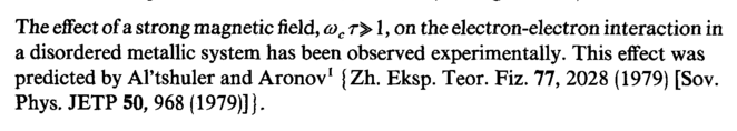 The effect of a strong magnetic field, ω0 r> 1, on the electron-electron interaction in a disordered metallic system has been observed experimentally. This effect was predicted by Al'tshuler and Aronov1 {Zh. Eksp. Teor. Fiz. 77, 2028 (1979) [Sov. Phys. JETP 50, 968(1979)]}.