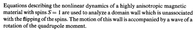 Equations describing the nonlinear dynamics of a highly anisotropic magnetic material with spins S = 1 are used to analyze a domain wall which is unassociated with the flipping of the spins. The motion of this wall is accompanied by a wave of a rotation of the quadrupole moment.