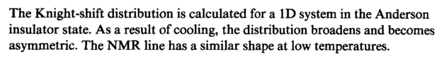 The Knight-shift distribution is calculated for a ID system in the Anderson insulator state. As a result of cooling, the distribution broadens and becomes asymmetric. The NMR line has a similar shape at low temperatures.