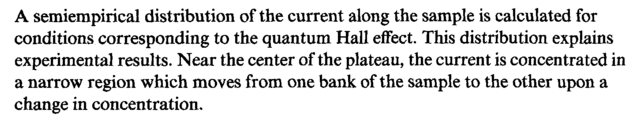 A semiempirical distribution of the current along the sample is calculated for conditions corresponding to the quantum Hall effect. This distribution explains experimental results. Near the center of the plateau, the current is concentrated in a narrow region which moves from one bank of the sample to the other upon a change in concentration.