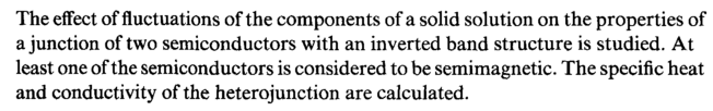 The effect of fluctuations of the components of a solid solution on the properties of a junction of two semiconductors with an inverted band structure is studied. At least one of the semiconductors is considered to be semimagnetic. The specific heat and conductivity of the heterojunction are calculated.